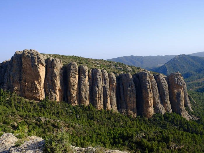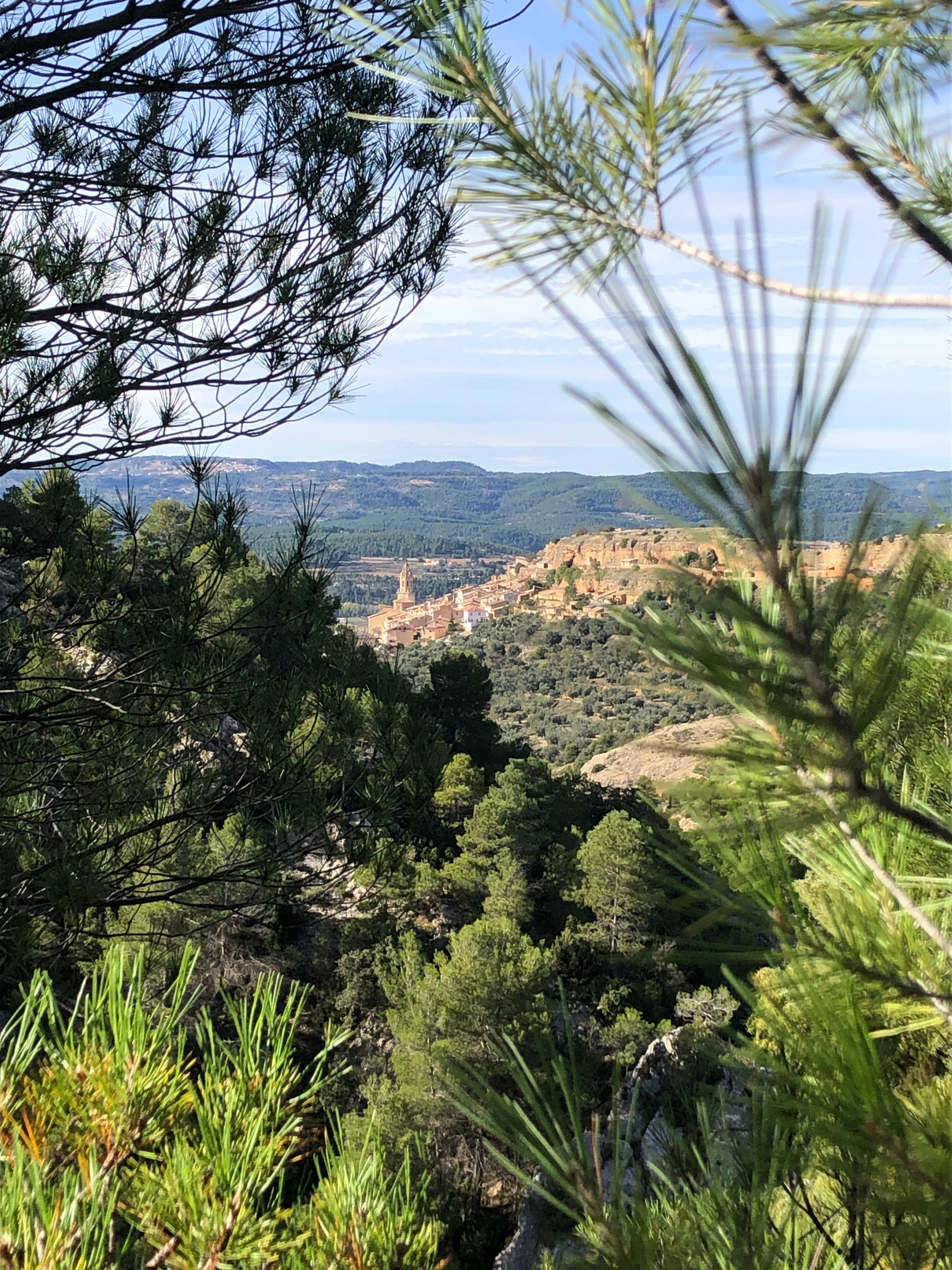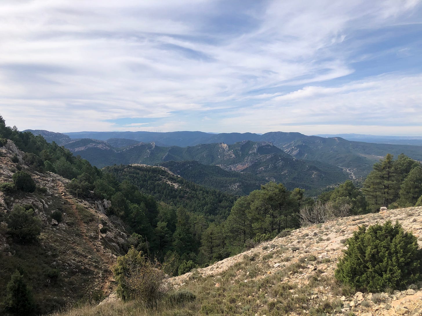 Dropping my son off at work, waiting tables at a lavish wedding at the impressive sanctuary of La Virgen de la Fuente, in Peñarroya de Tastavins, I decided on a whim to take a long walk. Peñarroya, despite its ugly fringe of pig farms, is a handsome mountain village with some well-preserved and grand houses overlooked by a colossal massif, and I had a mind to hoof it up to the top.